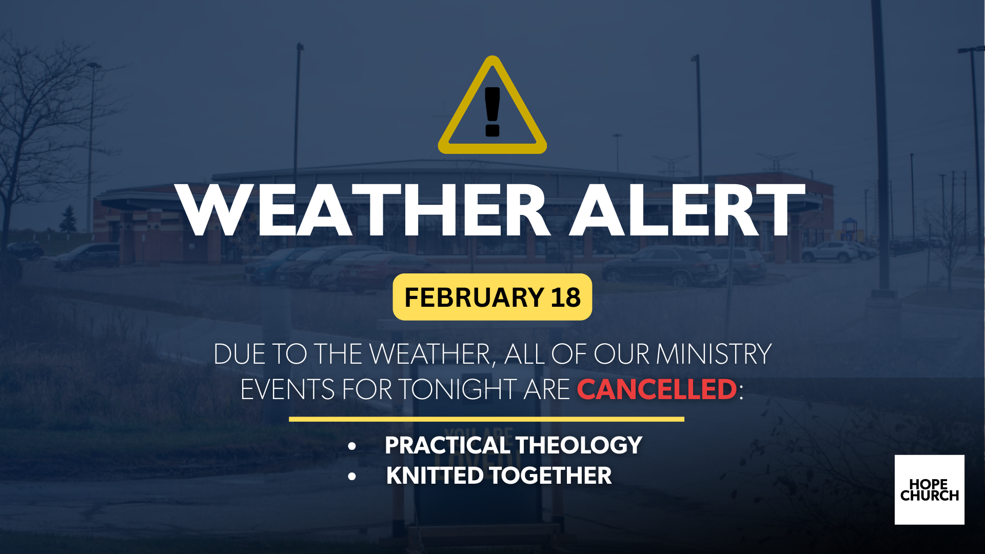 Join us for one of our Sunday morning services at 9:00 am and 11:30 am. Our Hope Kids program is available for children in Nursery, Pre-School, and JK though Grade 5 at our 9:00 am service, and for Pre-School and JK though Grade 3 at our 11:30 am service.
